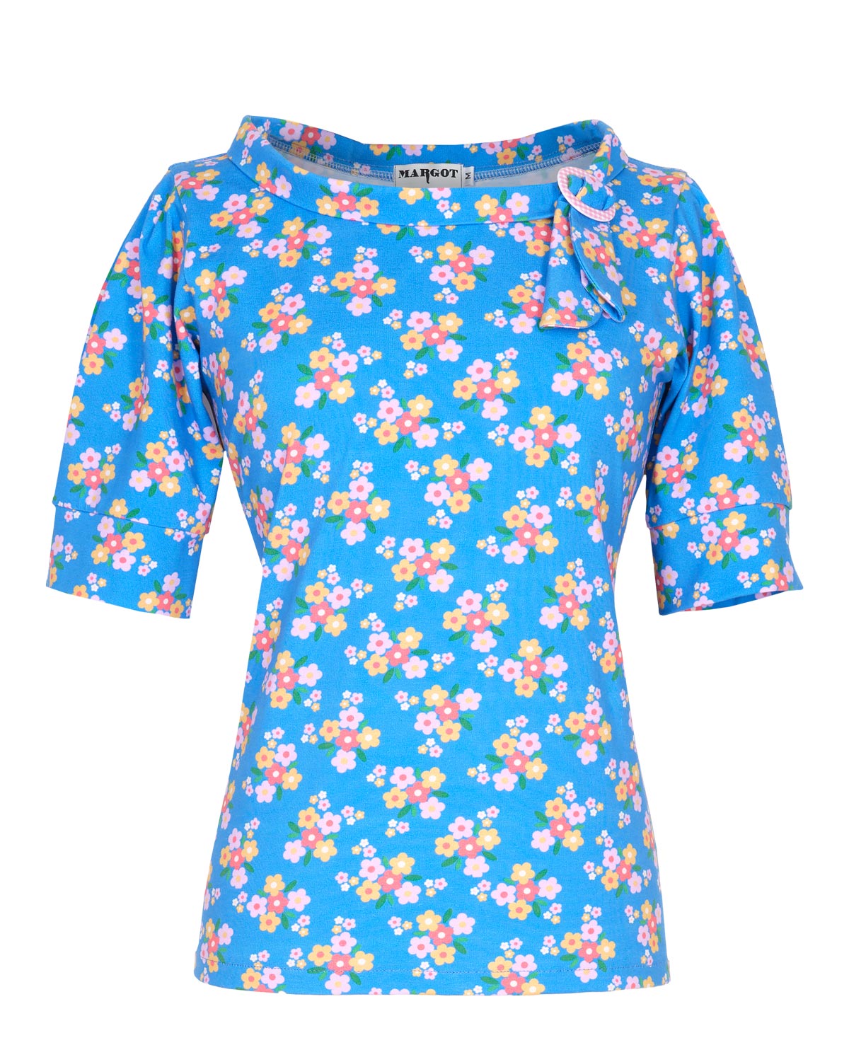 Top met bloemen in blauw.