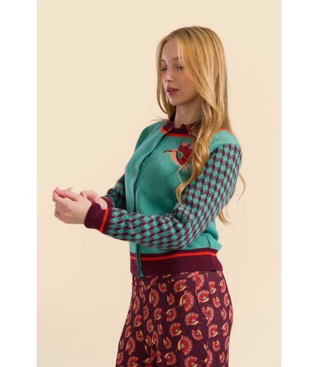 Super gaaf vest met geruite mouwen en print op de voorzijde.