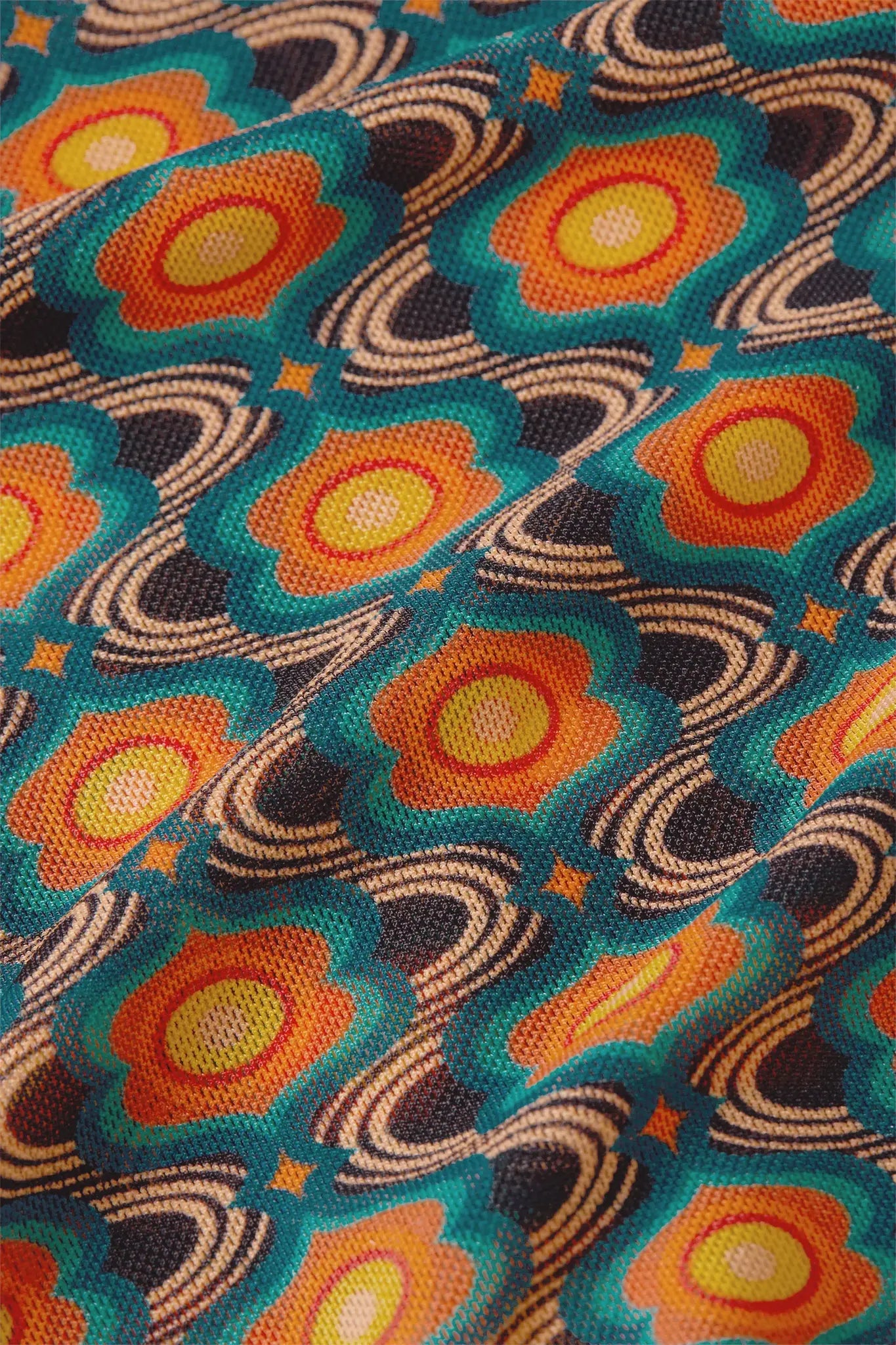 De Carina Blouse Duper Mesh heeft elegante plooien van het schouderstuk en de mouwen, een klassieke kraag, knoopsluiting en lange mouwen met manchetten. Het is gemaakt van stretch polyamide mesh met een subtiele grafische print en biedt een verfijnde, geraffineerde look.