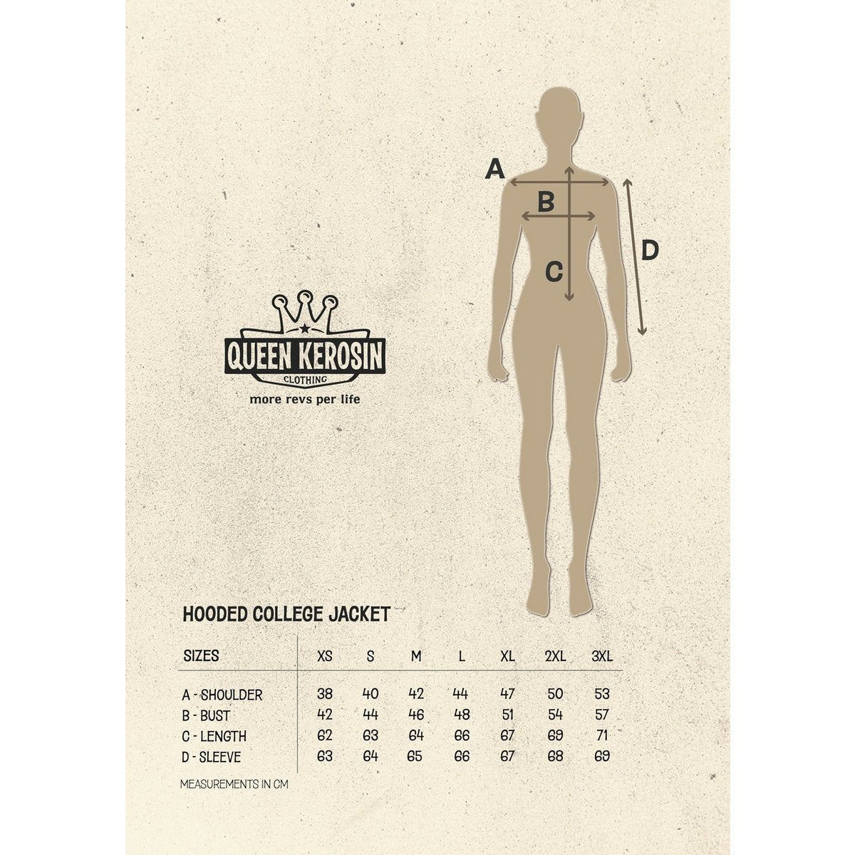 Het Queen Kerosin collegejack geeft je look een retro charme met zijn sportieve varsity-stijl! Het opvallende chenille-patch met de ‘q’ op de borst is een echte blikvanger, aangevuld met het grote Queen Kerosin-logo op de rug. De contrasterende mouwen, gestreepte ribboorden en capuchon met trekkoord versterken de authentieke college-vibe. Praktische details zoals steekzakken en de doorlopende ritssluiting maken de jas functioneel en comfortabel. Het aangenaam zachte sweatmateriaal zorgt voor een hoog draagcomfort - ideaal voor vrije tijd en streetstyle. Voor een perfecte complete look is er apart een bijpassende joggingbroek verkrijgbaar!