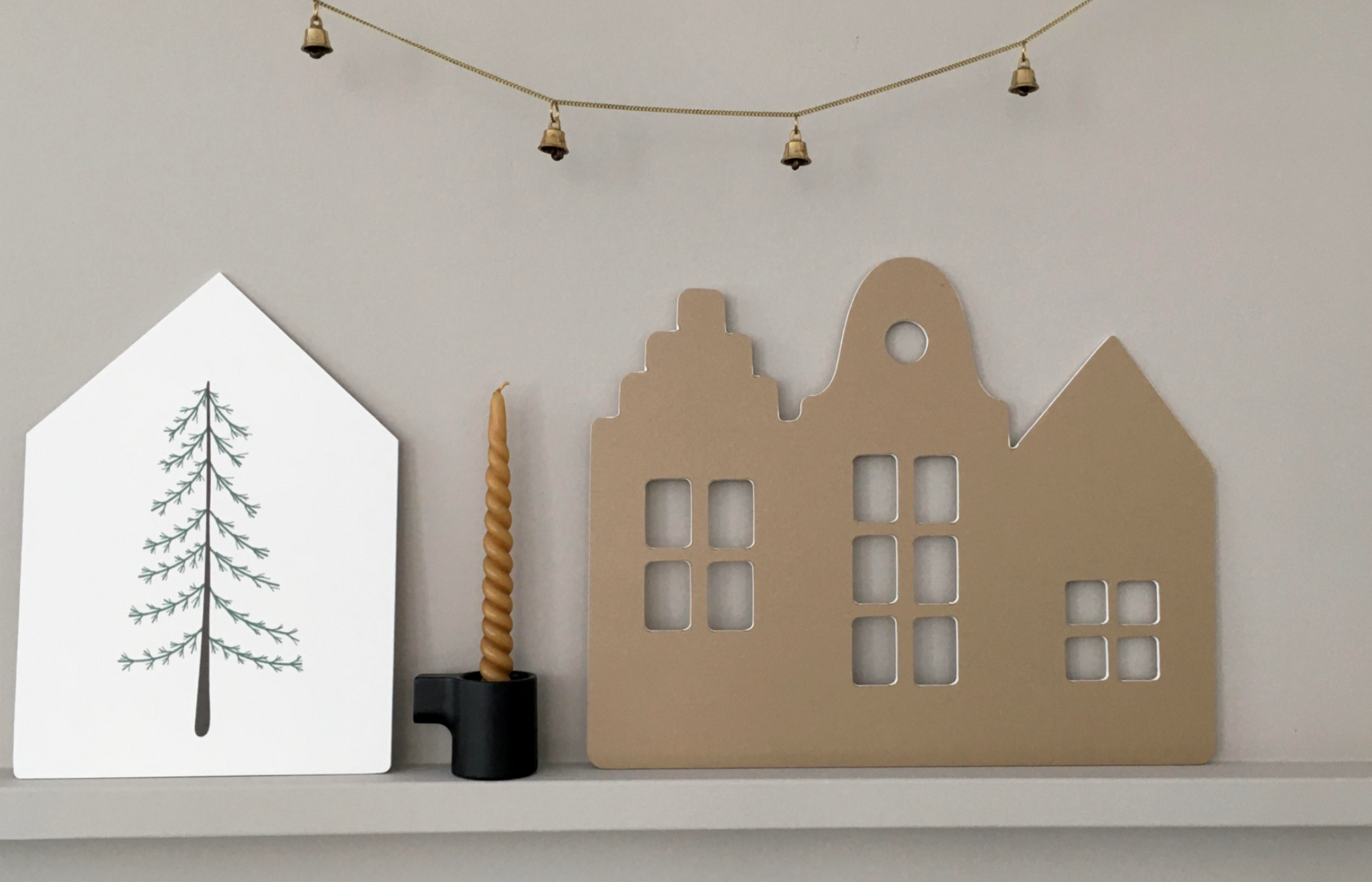 Trapgevel huisje in 40cm hoog . Past ook perfect in de houten standaard. De raampjes zijn uitgesneden. Leuk om waxinelichtjes achter te zetten voor een mooi effect.