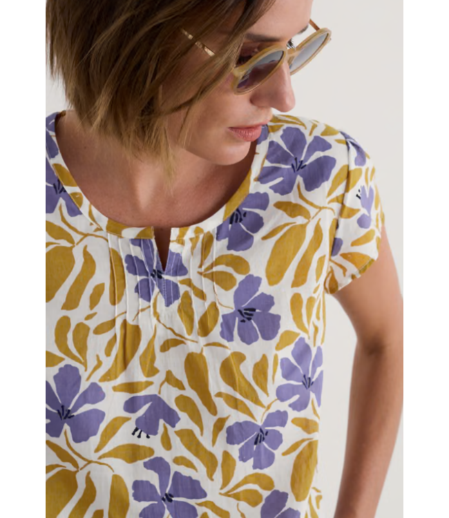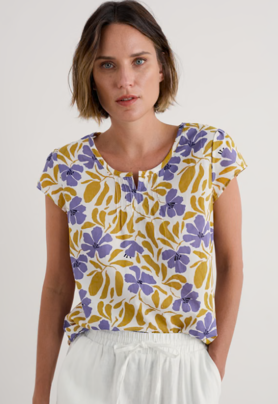 De Garden Gate top is semi-fitted met een ronde hals en kapmouwtjes. Het is afgewerkt met leuke plooien aan de voorkant om het vorm te geven en een Keyhole met knoopsluiting aan de achterkant.