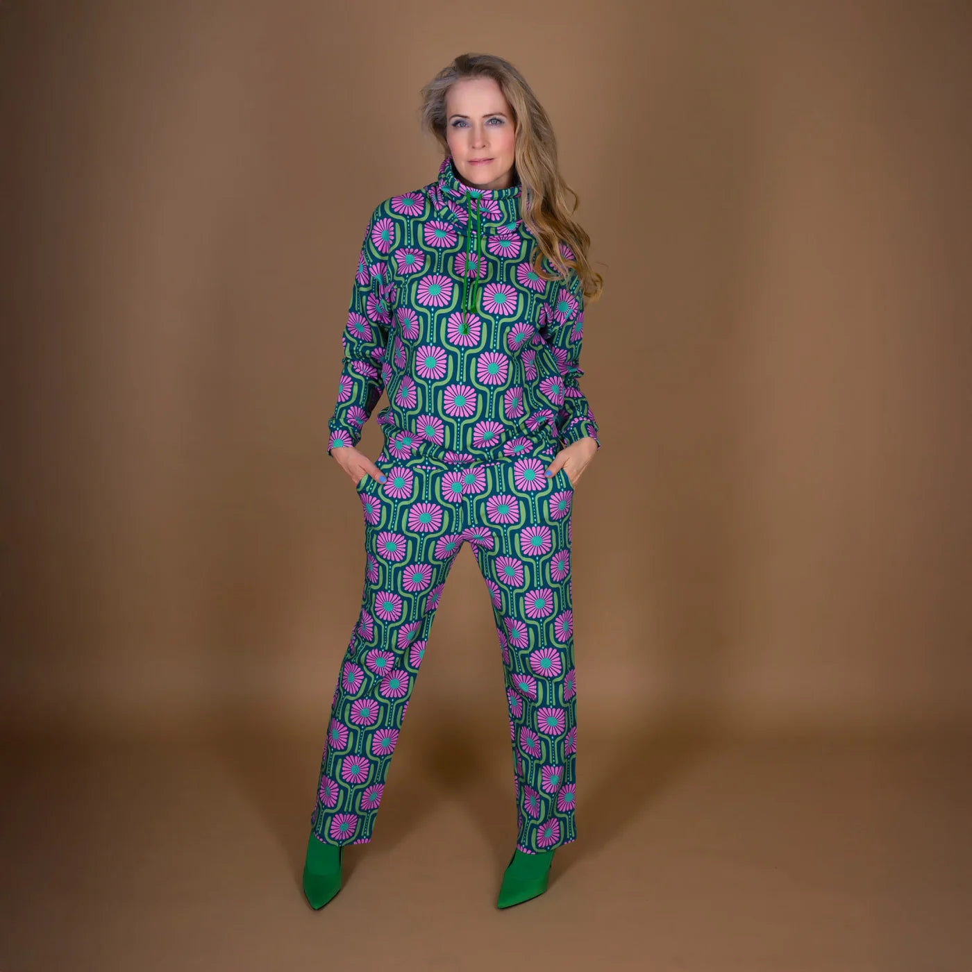 Lekkere en zachte stretchbroeken/sweatpants met een mooi bloemenpatroon geïnspireerd op behang uit de jaren 60.