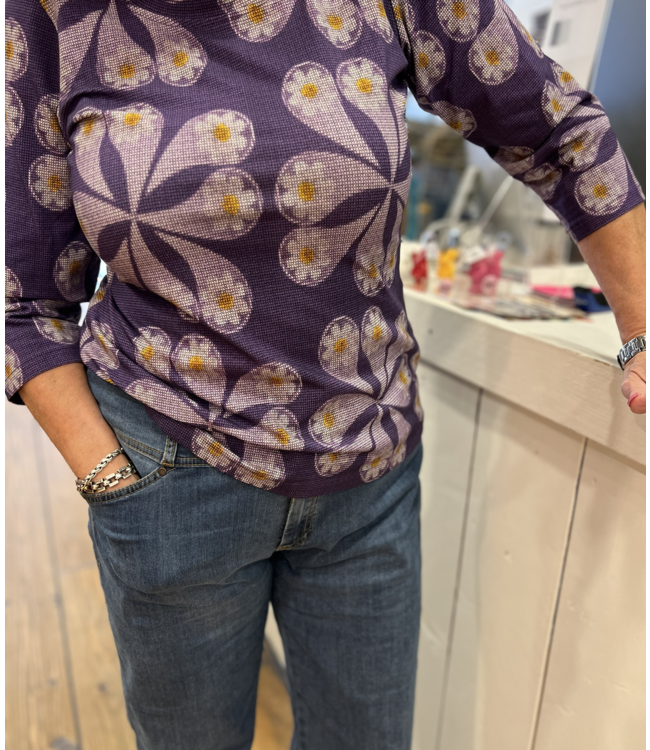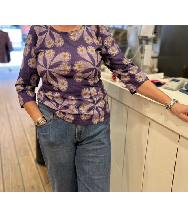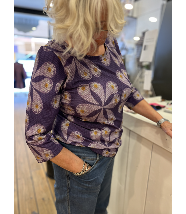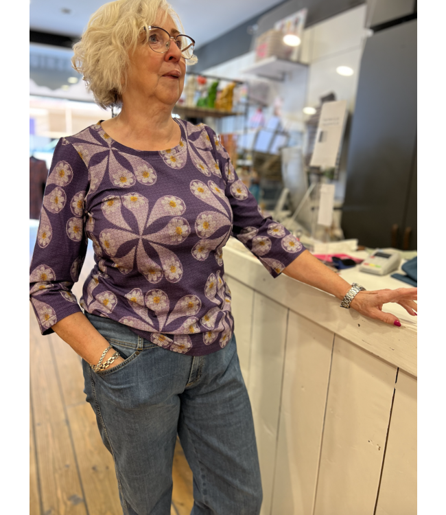 Paars shirt met bloemen print. De serie shirt komen uit de Limited Edition van Margot.
