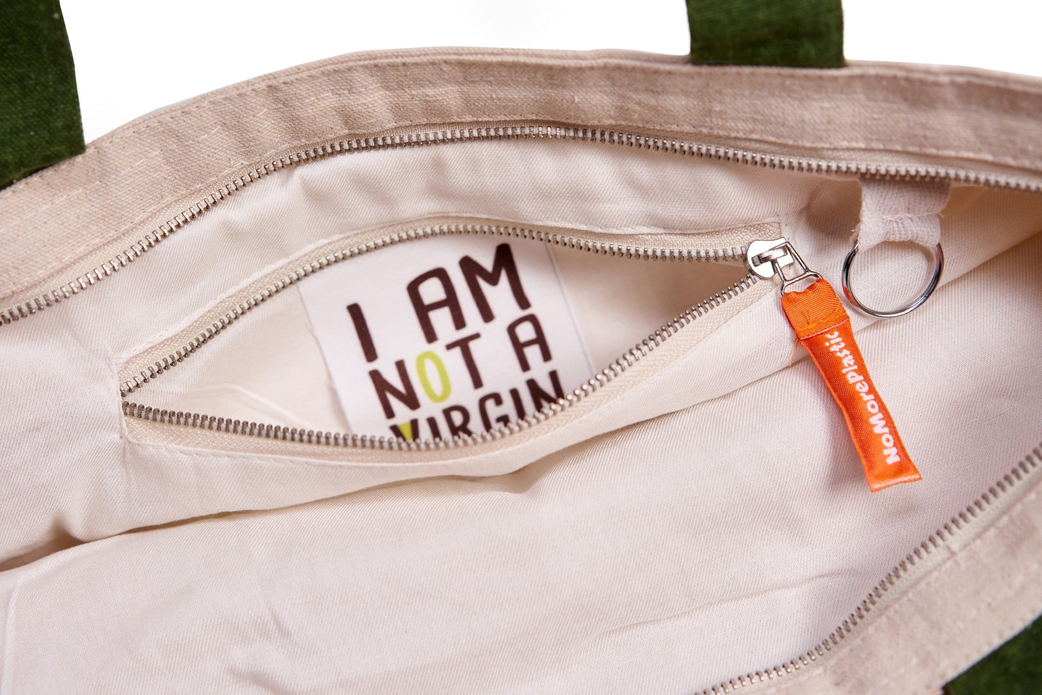 Duurzame shopper van gerecycled bedlinnen en tafellakens Lekker groot formaat: 54x40x18 cm Binnenvoering, binnenvak en ritsen 5% van de opbrengst gaat naar The Great Bubble Barrier.