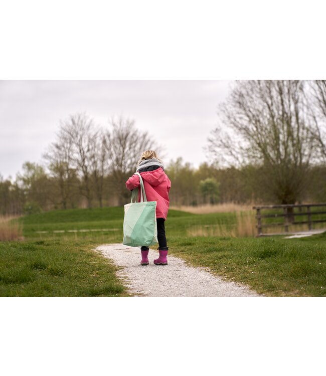 In onze ogen is het hergebruiken van materialen een no-brainer, dus maakten we onze tassen van gerecycled bedlinnen en tafellakens. Omdat we jou willen helpen om voor 4 dagen aan boodschappen te kunnen tillen, maakten we hem lekker groot en extra sterk. Duurzame shopper Soft Mint is gevoerd en heeft een met rits afsluitbaar binnenvak, waarin jij jouw telefoon en portemonnee kunt opbergen. Het hoofdvak is ook afsluitbaar met een rits.