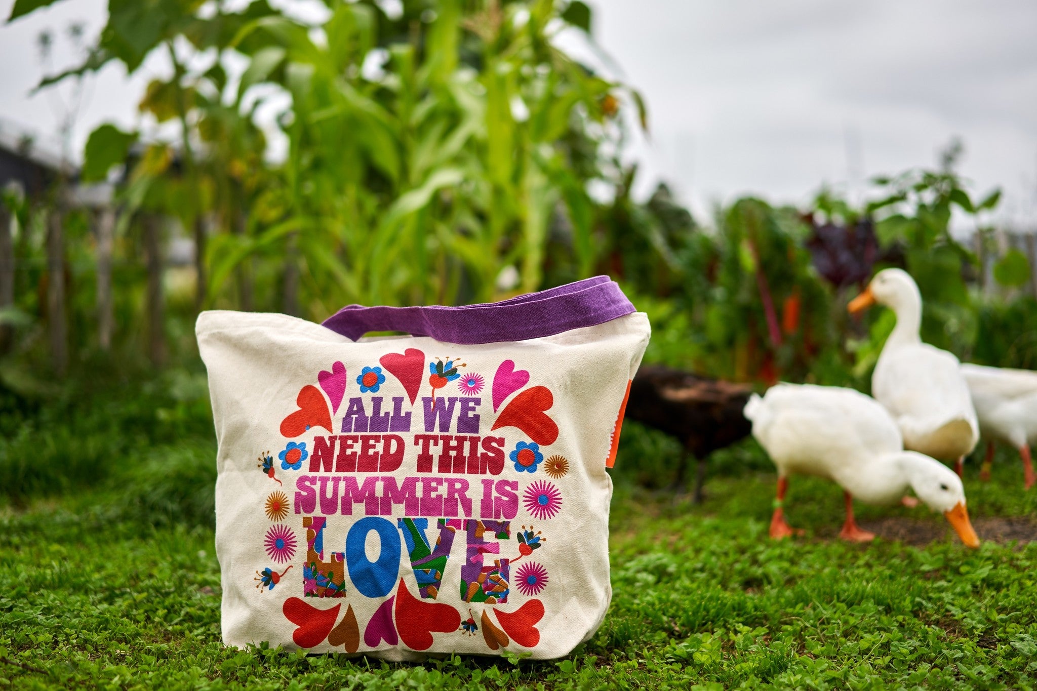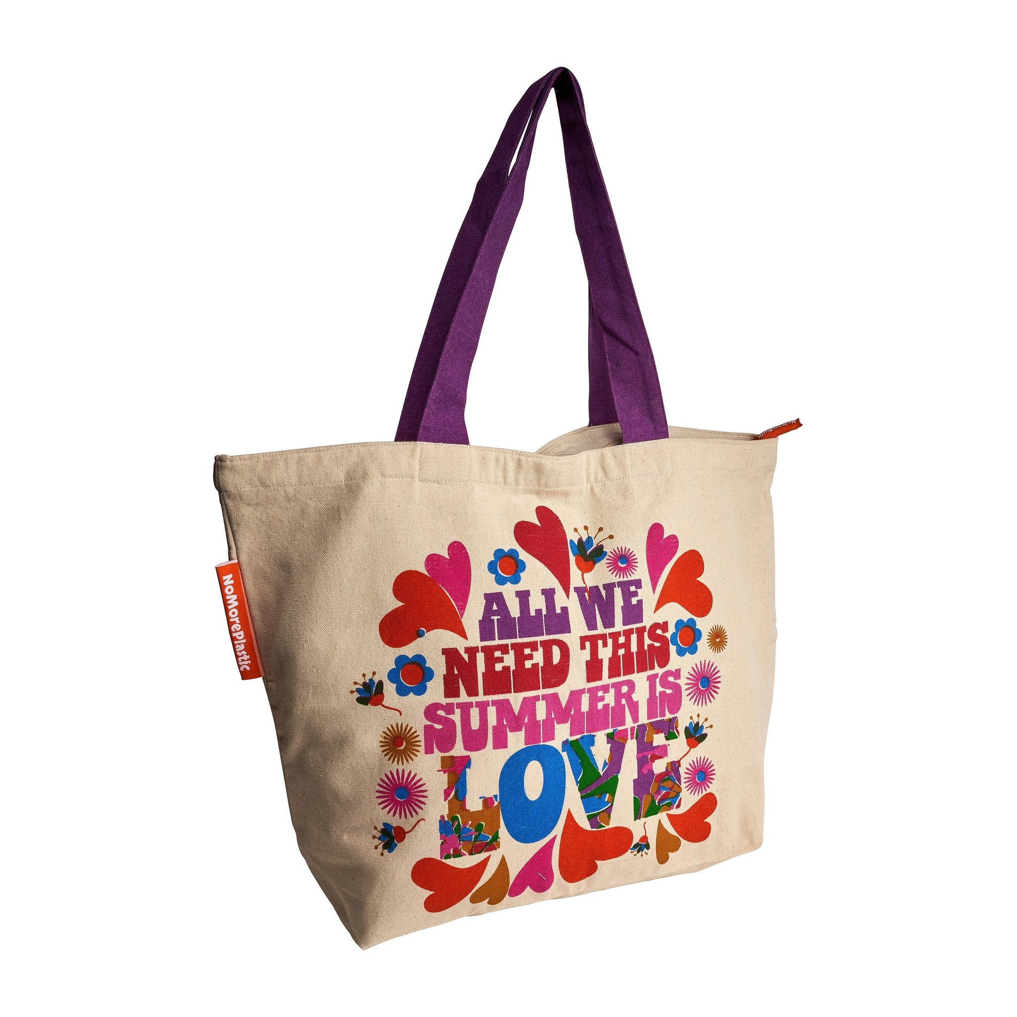 Duurzame shopper van gerecycled bedlinnen en tafellakens in hippe zomer print!