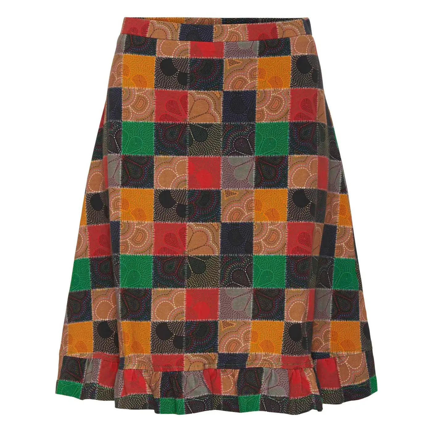 Superleuke A-lijn rok met prachtige ruches aan de onderkant. Het patroon bestaat uit bloemen in verschillende mooie kleuren.
