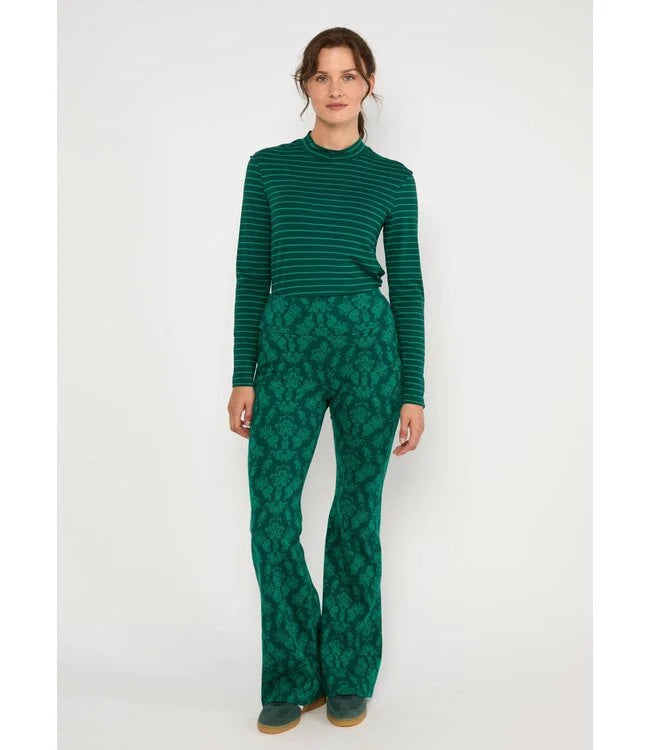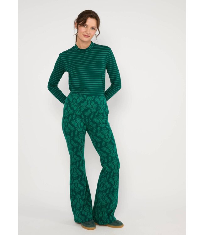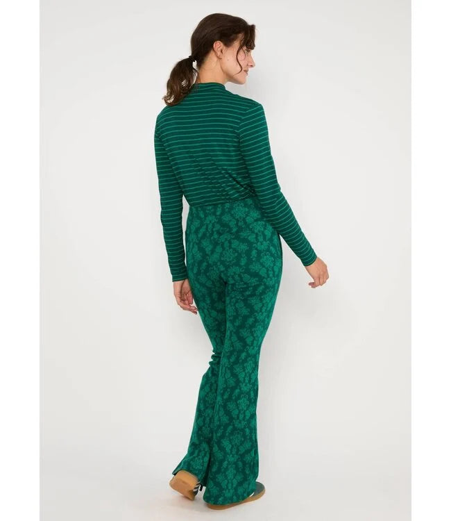 Retro-geïnspireerd, comfortabel en een echte blikvanger. Deze lange uitlopende broek van zachte biologische katoenen jersey met een vleugje elastaan combineert de sfeer van de jaren 70 met modern comfort.
