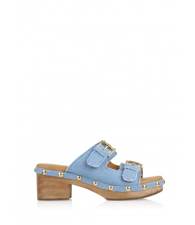 Zie jij deze hakken al aan je voeten deze zomer? Aan de buitenzijde gemaakt van denim en aan de binnenzijde gemaakt van leer. Het zachte voetbed zorgt dat ze heerlijk lopen.
