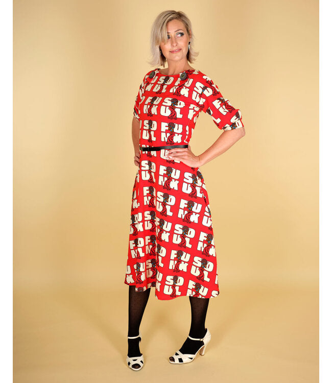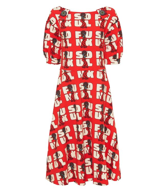 Een super gave maxi jurk met een te gekke print; FUNK SOUL.Dit model valt altijd iets groter dan normaal.