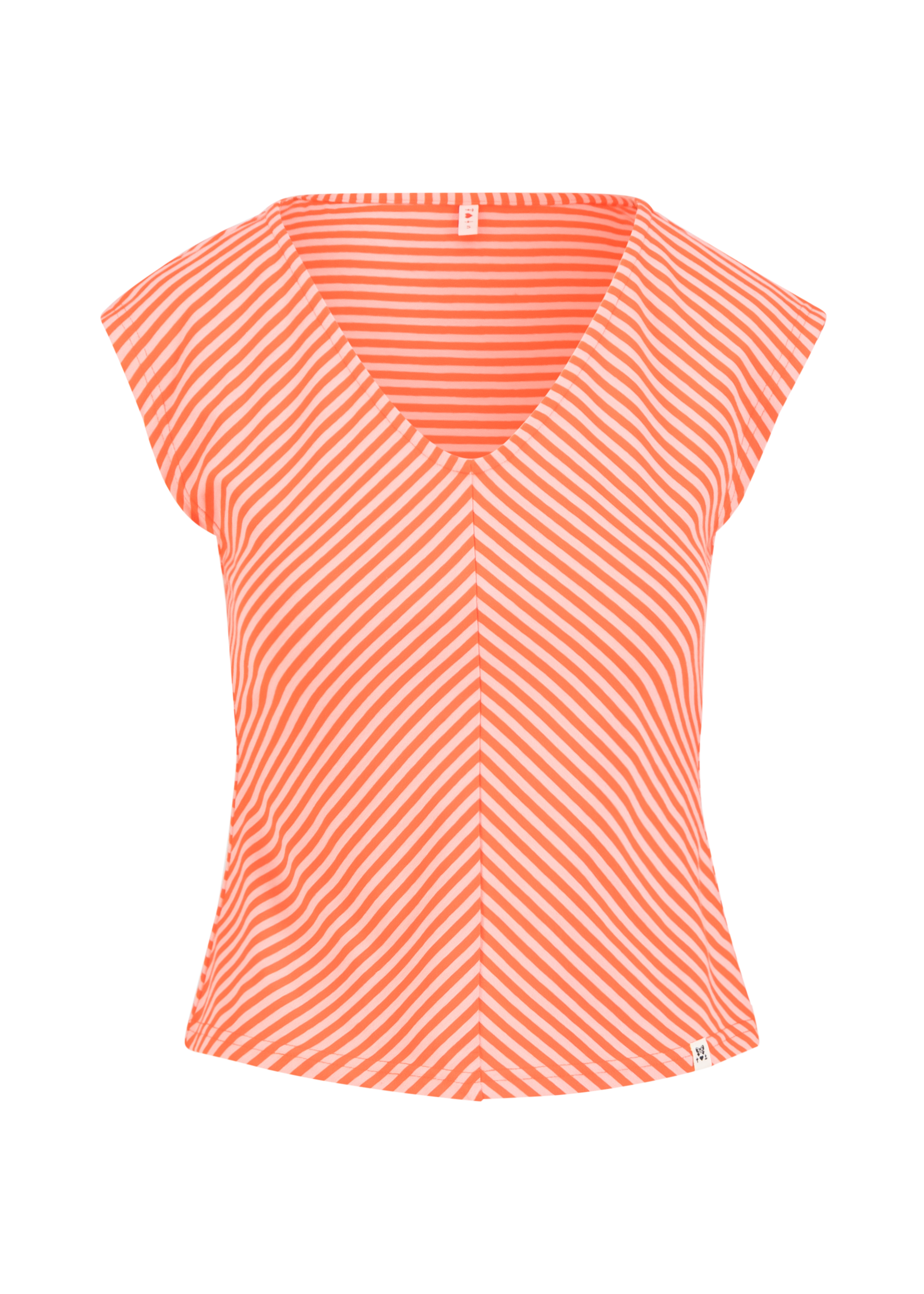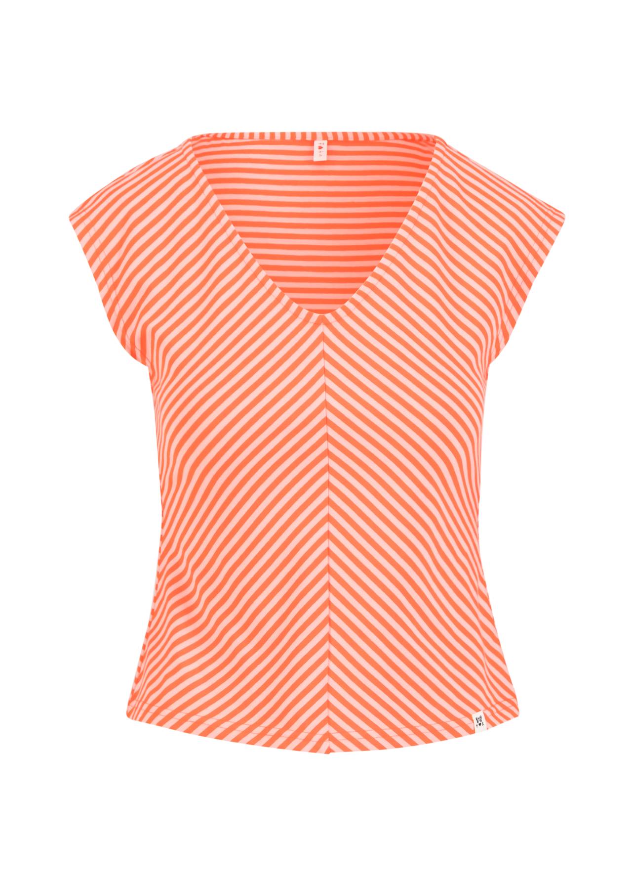 Shirt met streepjes in blauw en rood met wit.