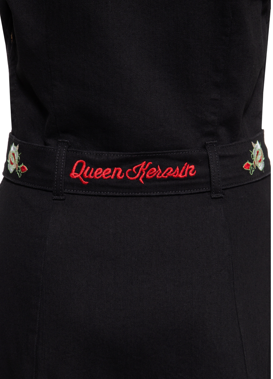 Zwarte Swing dress met borduursels.