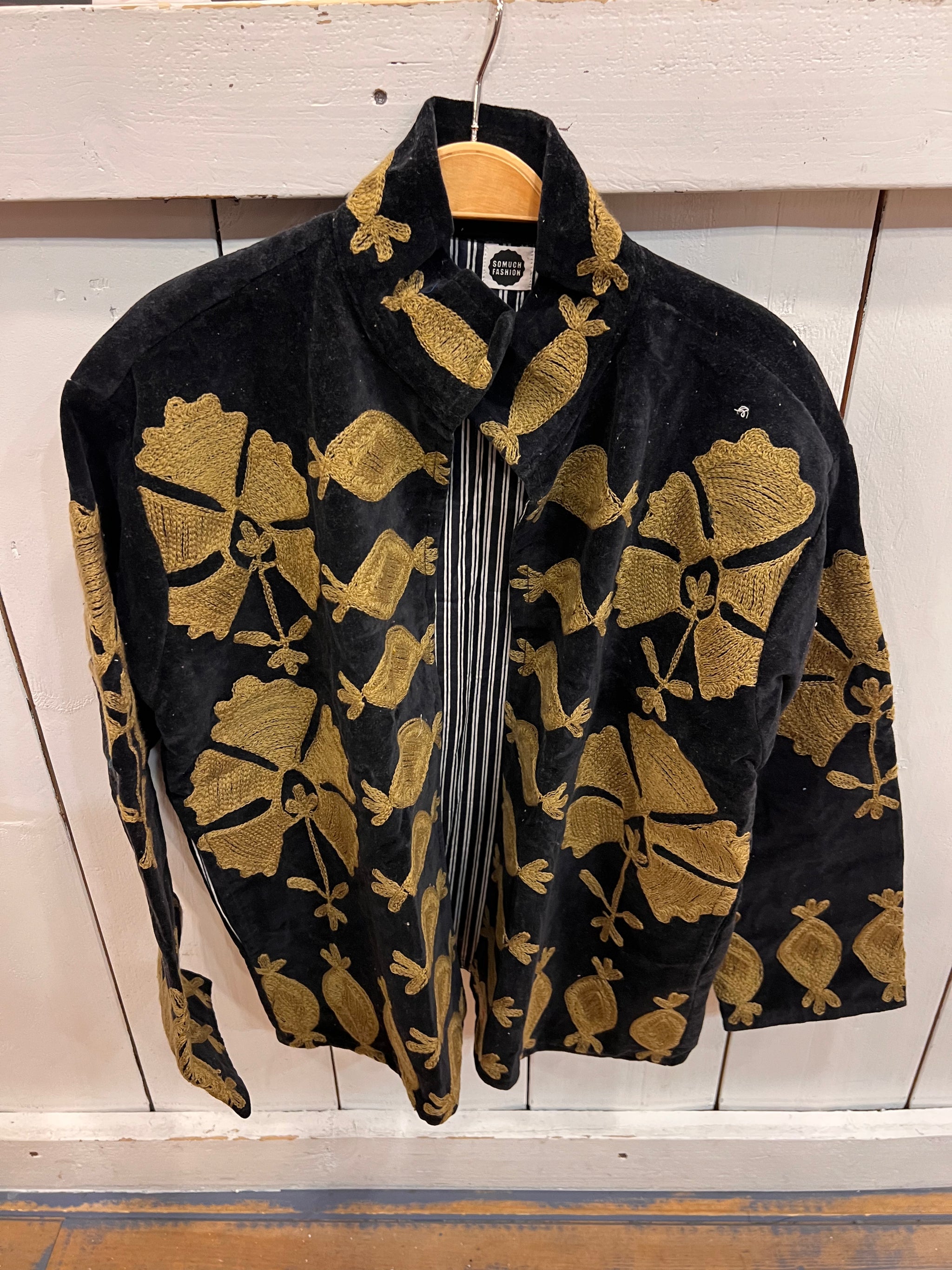 Super gaaf jasje in zwart met goud kleurig borduursel.