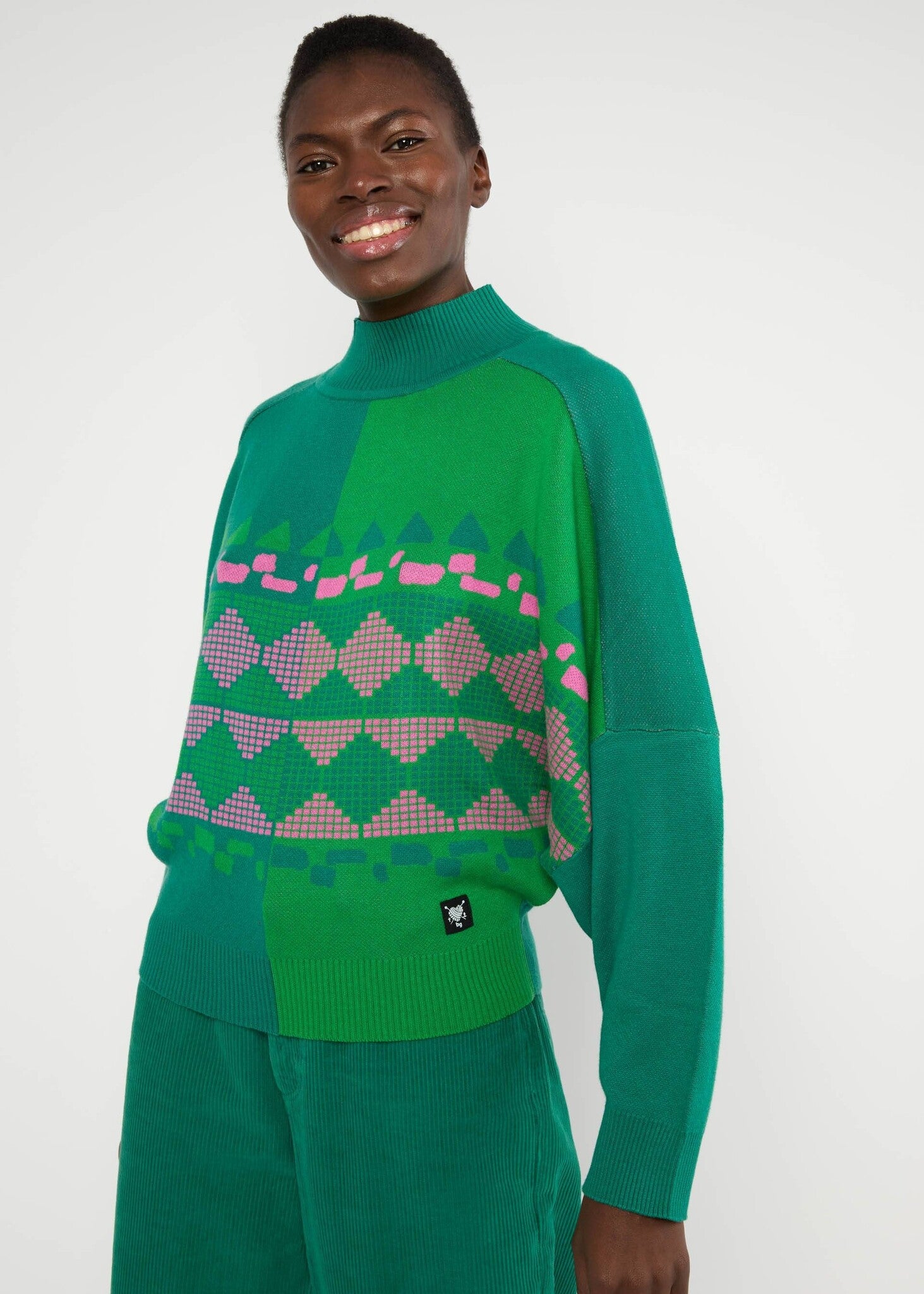 Winterpullover Diamond Loom Egg Chunky Pullover Green