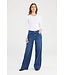 Jeans in Dark Blue.Heeft wijd uitlopende pijpen.